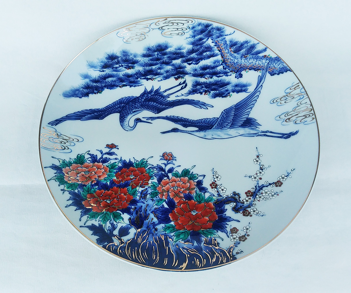 "有田焼 色絵 鶴に松牡丹の絵 大皿 尺3寸 (39cm) 未使用 飾り皿 アウトレット" の最低購入数は 1 です.